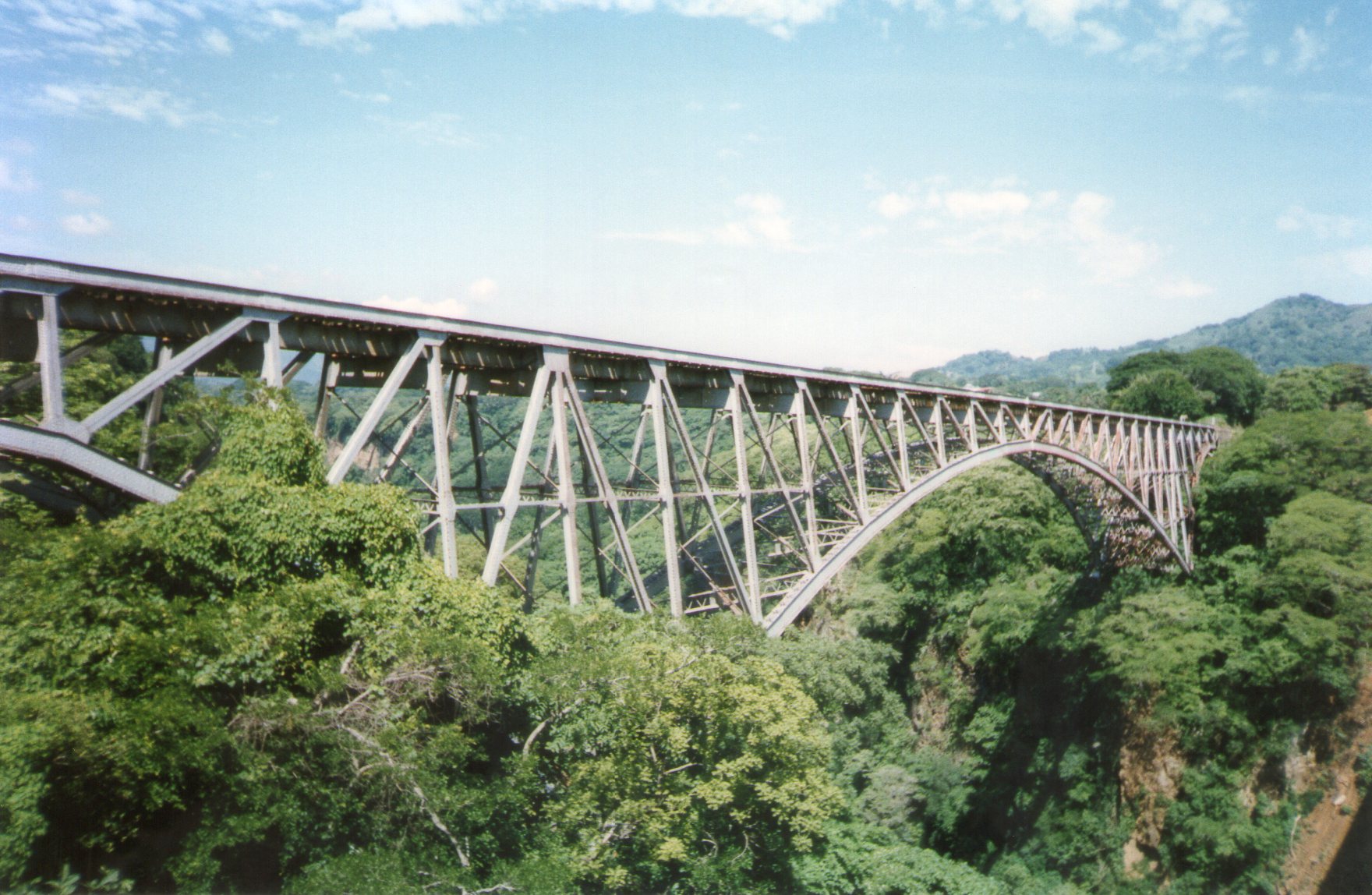 Está compuesto por un arco central y dos medios arcos laterales. Su longitud es de 219.38 metros y su altura sobre el nivel del río es de 105 metros.